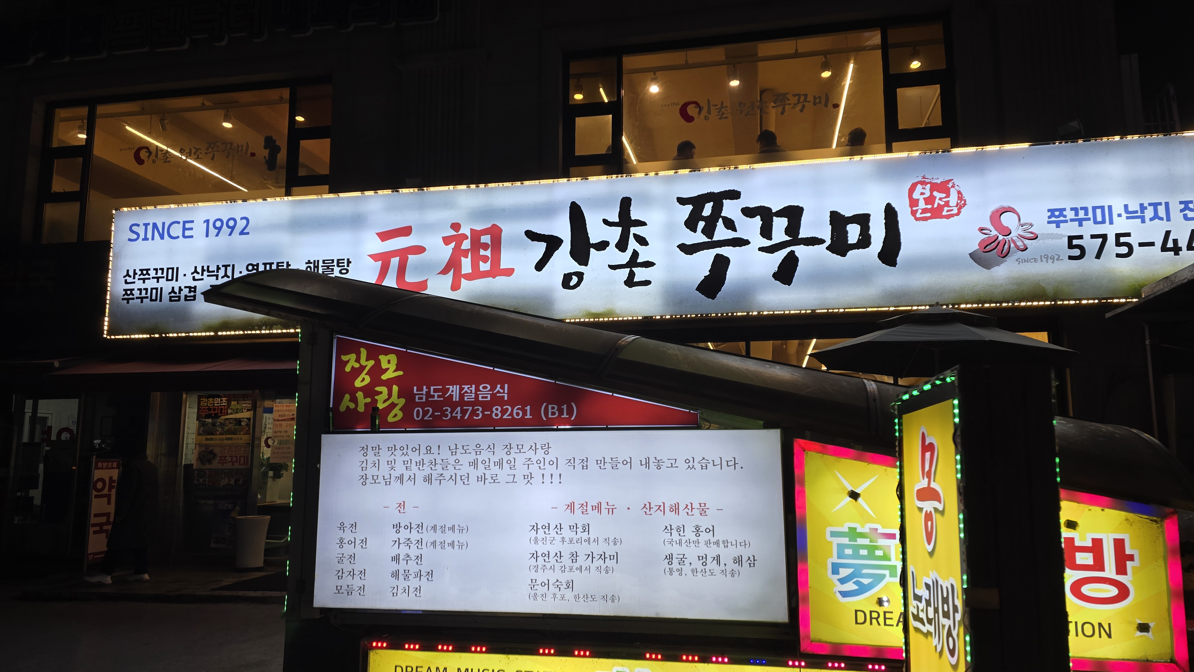 양재역 부근 비즈니스 미팅을 마치고 늦은 저녁 찬바람이 불어오고 무언가 따뜻한 것이 생각나는 시기 무엇을 먹을까 고민도 없이 쭈꾸미 샤브샤브로 메뉴를 정하고 강촌원조쭈꾸미 간판을 향해 걸어갑니다.