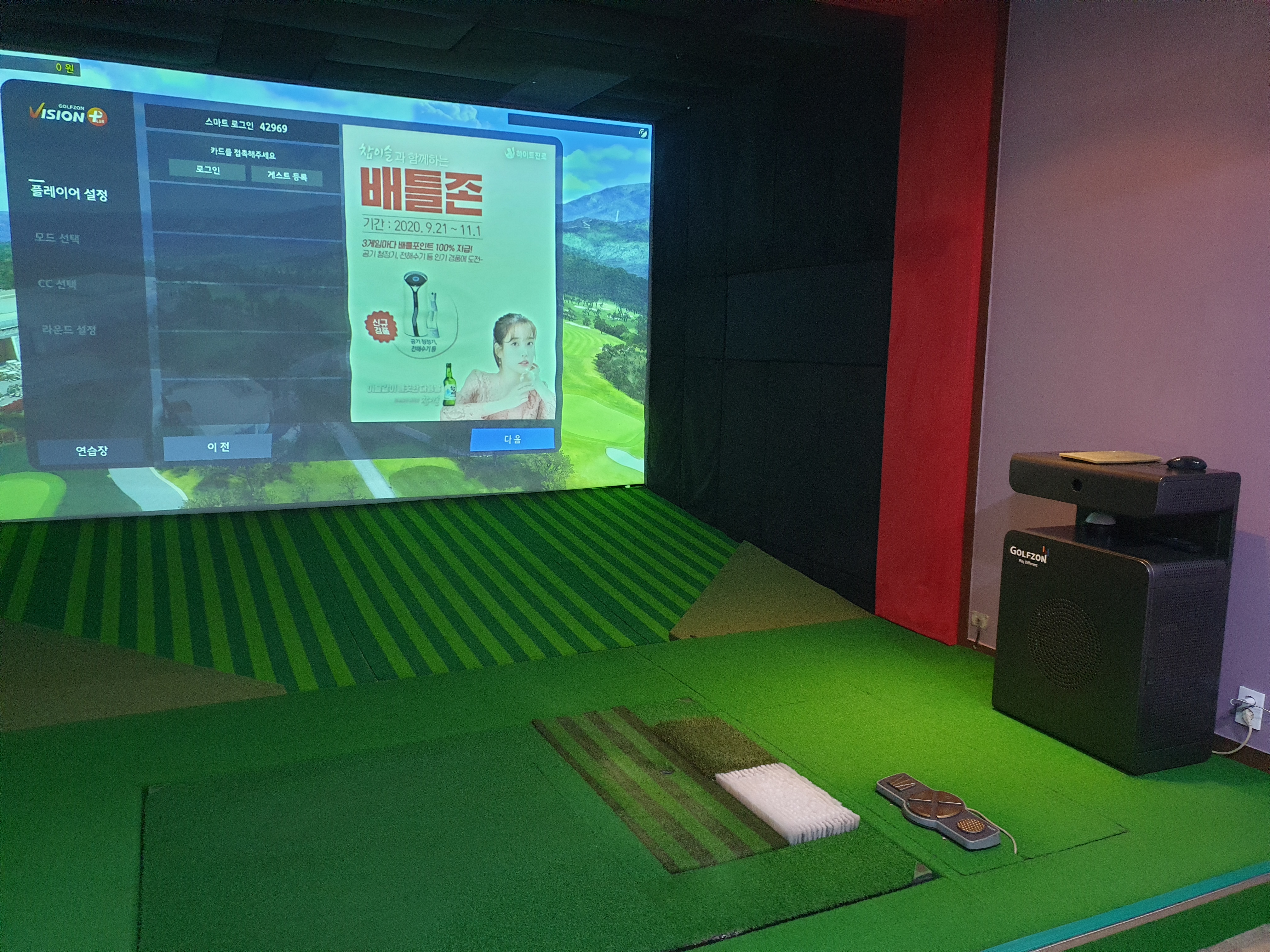 골프존 타입은 컴퓨터로 제어하고 바닥이 한방향으로 움직이는 비전플러스 타입으로서 페어웨이와 러프 그리고 샌드 매트는 깔끔하게 관리되어 있습니다.