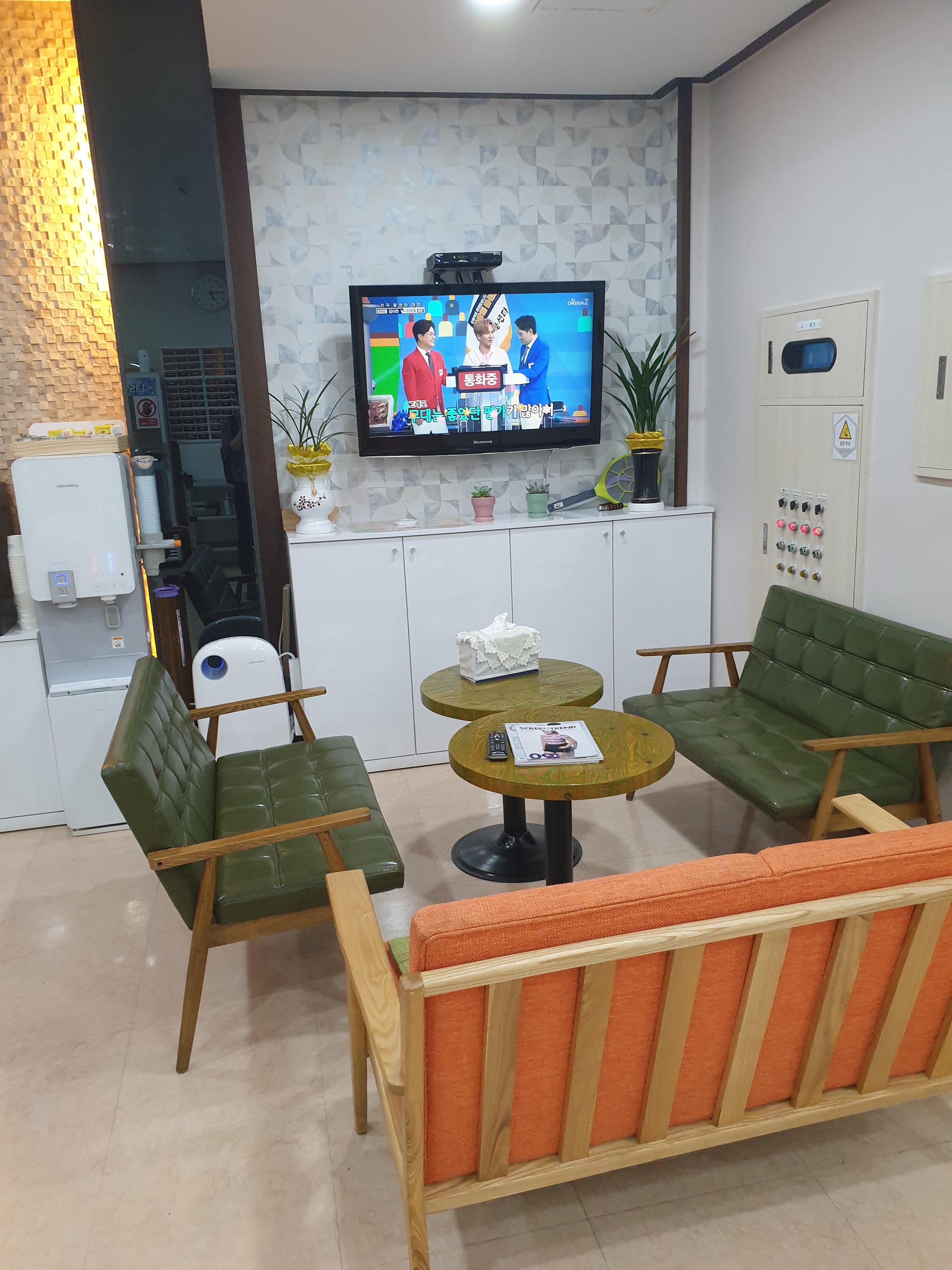 입구의 모습입니다. 미닫이식 자동문으로 되어있으며 대기하면서 남은 방의 상황을 살펴볼수 있도록 스크린이 벽면에 설치되어 있는 모습입니다.
