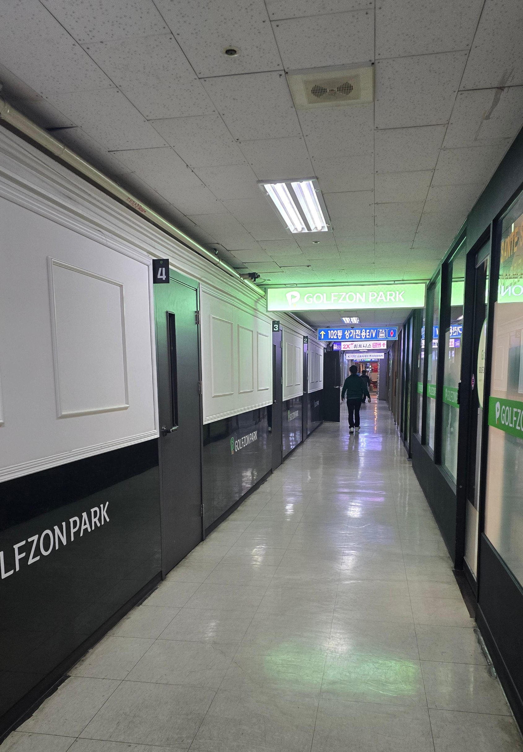 지하 주차장에서 바로 연결된 통로를 따라 들어가니 바로 스크린골프장이 나오고 상가복도를 따라 방이 여러개 배치된 독특한 구조를 살펴보게 됩니다.