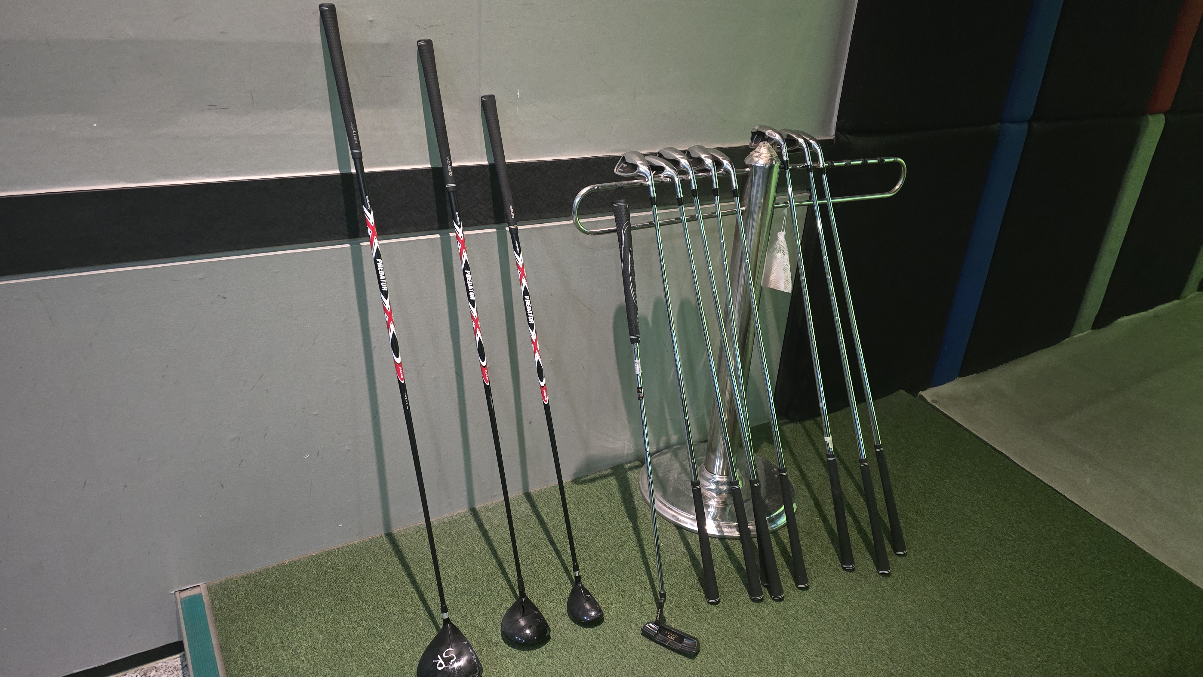 내부를 자세히 살펴보니 채를 가져오지 않아도 사용할 수 있는 하우스채가 룸안에 구비되어 있고 매트는 벙커를 제외한 모든 매트가 투비전 플러스 형식으로 사용감이 덜해서 보기 좋았으며 벙커의 경우 울룩불룩한 매트는 오히려 호불호가 갈리므로 매우 만족스러운 세팅이라 할 수 있습니다.