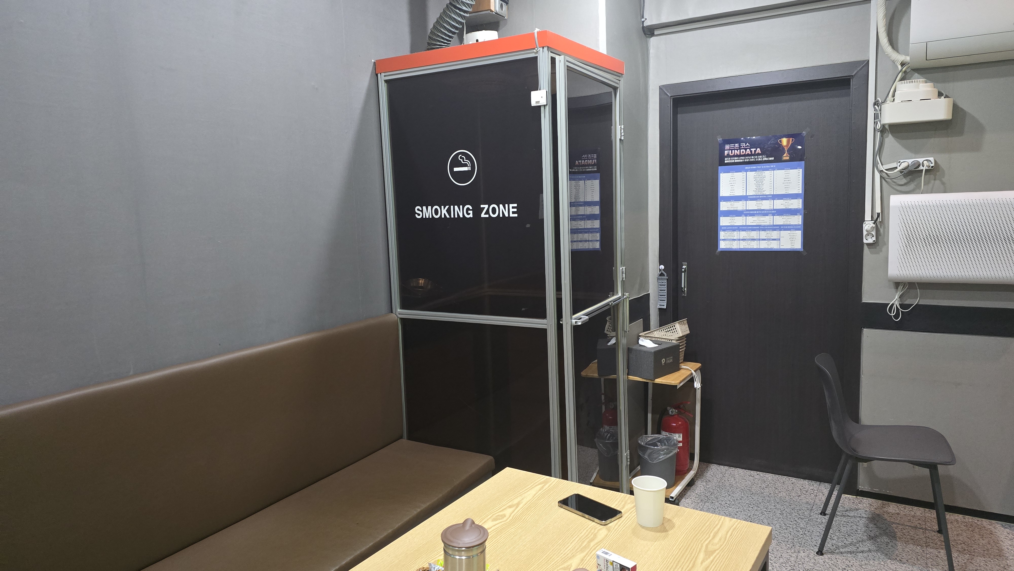플레이를 하다보니 뒤쪽에 스모킹존이 별도로 마련되어 있는모습을 보게 됩니다. 흡연자들에게는 무척 편리하겠다는 생각을해보며 옆방과 이어지는 문도 있는것으로 보아 단체 네트워크 플레이도 가능해서 편리하겠다는 생각을 해보며 가락시장근처 가락상떼스크린에서의 즐거운 플레이를 이어가봅니다.