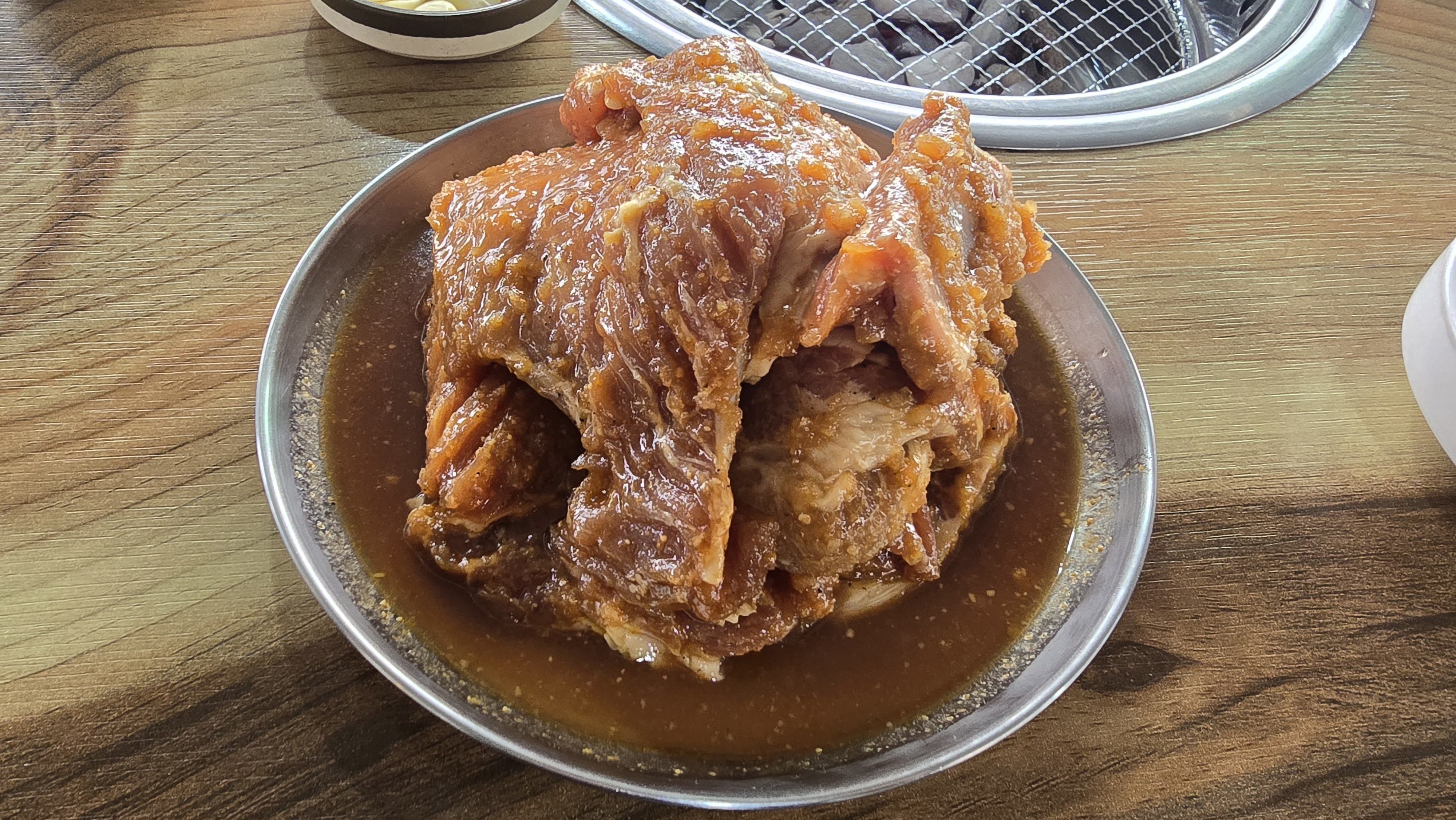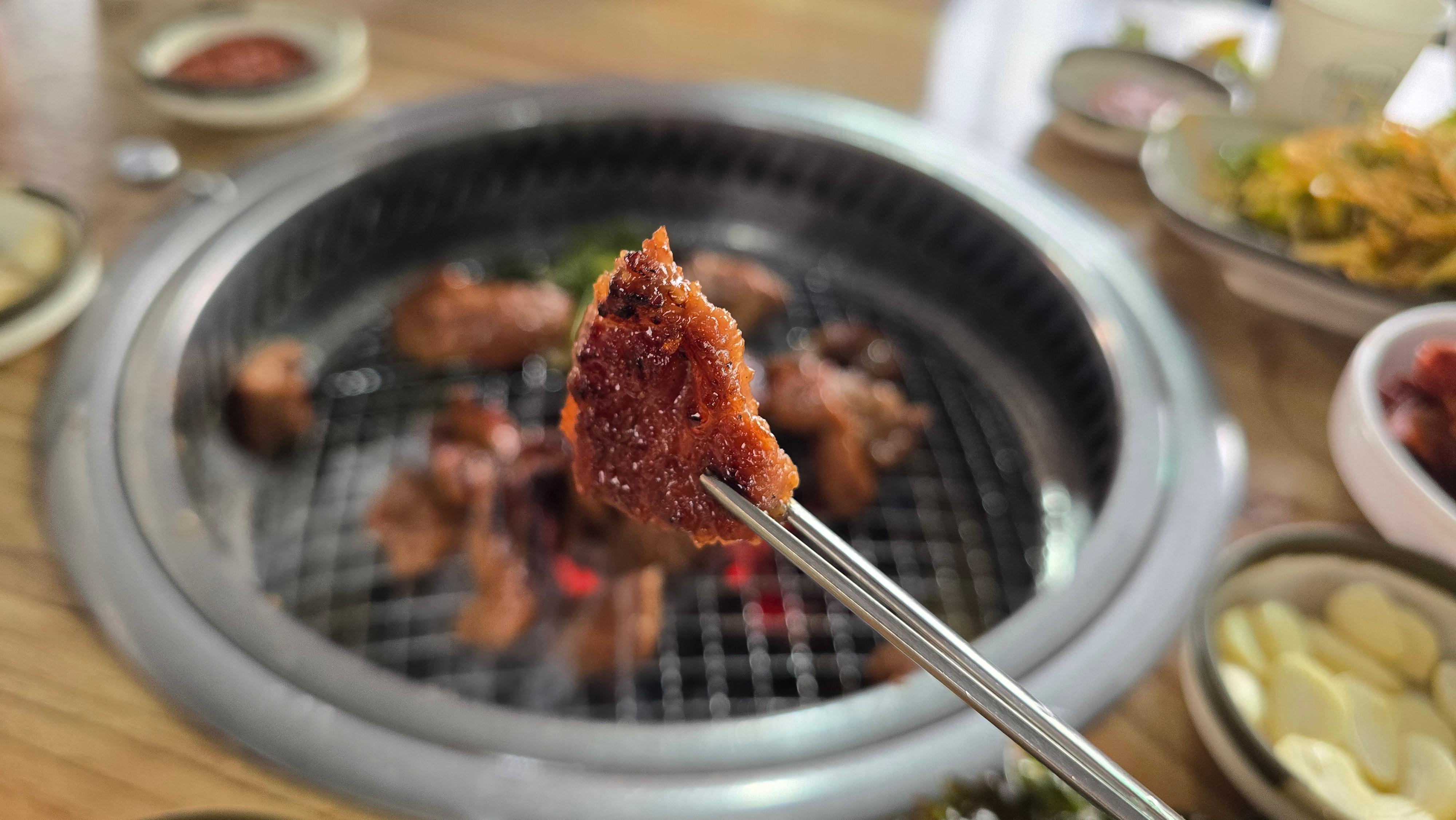 돼지갈비를 추가로 주문하여 불판에 올려놓고 맛있게 구워봅니다. 워낙 사람이 많은 곳이라 그런지 구워주는 서비스는 기대하기가 어려우며 팁을 준다고 역시 구워주지는 않습니다. 숯불이기 때문에 조금만 신경을 덜써도 고기가 타버리기 때문에 전담으로 굽는사람의 솜씨가 중요하며 다행히 그릴 옆의 수많은 구멍으로 연기는 빠져나가기 때문에 연기가 자욱한 상황은 피할 수 있습니다.