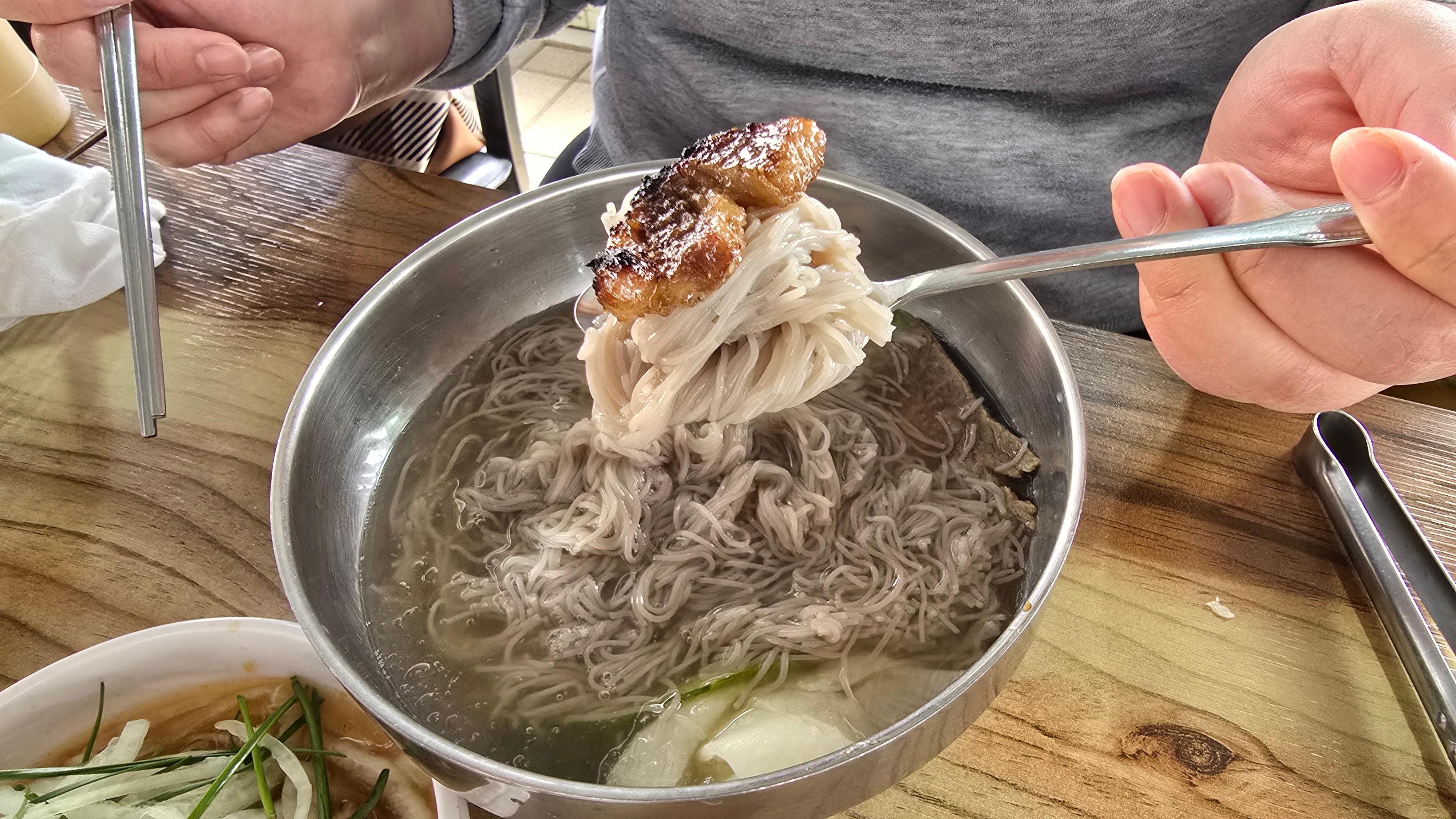 맛있게 고기를 구워먹으며 후식으로 냉면과 된장찌개를 취향대로 골라 남은 고기를 맛있게 즐겨봅니다. 냉면은 후식냉면이 없어서 하나씩 주문해야하지만 양이 많기 때문에 나눠먹어도 충분한 사이즈라고 생각되며 된장찌개도 기본이 아닌 추가로 주문을 해야하지만 상당히 맛있게 끓이는 것으로 보아 양념맛을 낼줄 아는 곳이라는 생각을 해보게 됩니다.