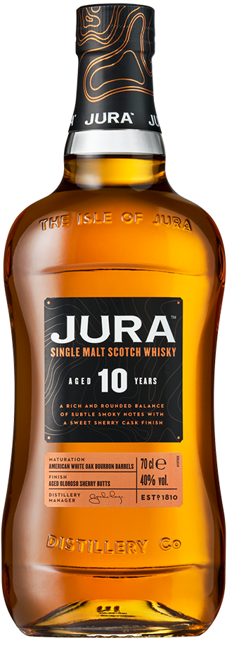 주라 싱글몰트 제품군의 가장 기본적인 라인업의 제품으로 잘 알려져 있으며 부드러운 맛을 특징으로 내세우고 있는 것이 특징인 제품입니다. 싱글몰트 원액을 버번위스키를 숙성시켰던 아메리칸 오크통에 담아 10년간 숙성 후 올로로소 쉐리와인통을 사용하여 피니시한 제품으로 부드러움속에서 바닐라와 진한 초콜릿의 향을 느낄 수 있는 제품이기도 합니다.
